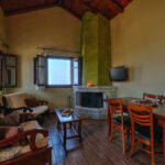 The visible high-ceilinged wooden roof gives its own character to the specific type of room, while the classic furniture, as well as the fireplace, are in keeping with the general style of the accommodation. The quality equipment of the kitchen and the bathroom ensure a comfortable stay.